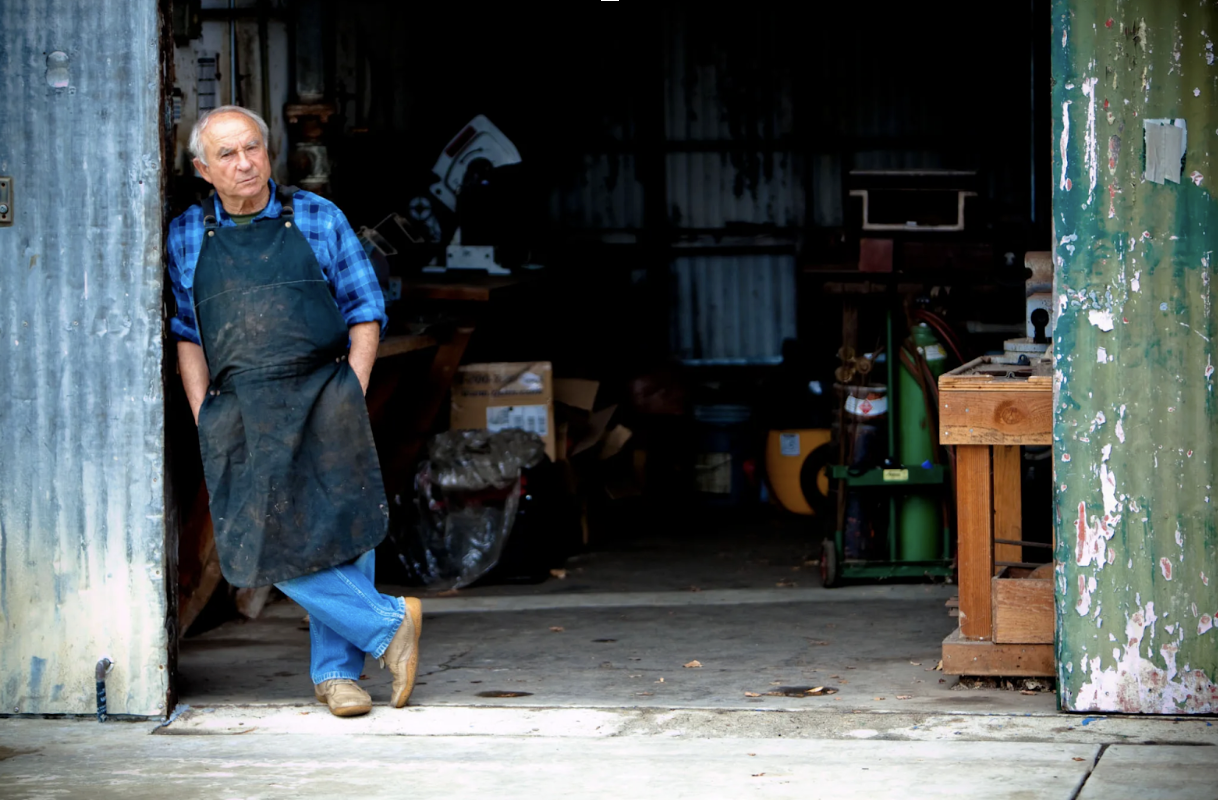 Yvon Chouinard pictured in his workshop, a quiet counterpoint to conventional leadership. Less CEO, more craftsperson, this image reflects Patagonia’s belief in trust, autonomy, and work shaped around life, not the other way around.